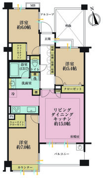 3LDK、専有面積75.21m2、バルコニー面積8.1m2