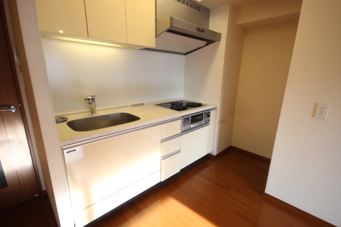 冷蔵庫スペースも確保されており、ワイドタイプのキッチンです。