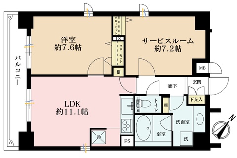 | 専有面積 | 57.64m²(壁芯) | 所在階/階数 | 11階/地上12階 |