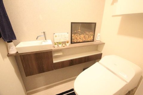 タンクレストイレを採用。室内に手洗いや収納も備え、ゆったり広々お使いいただけます。